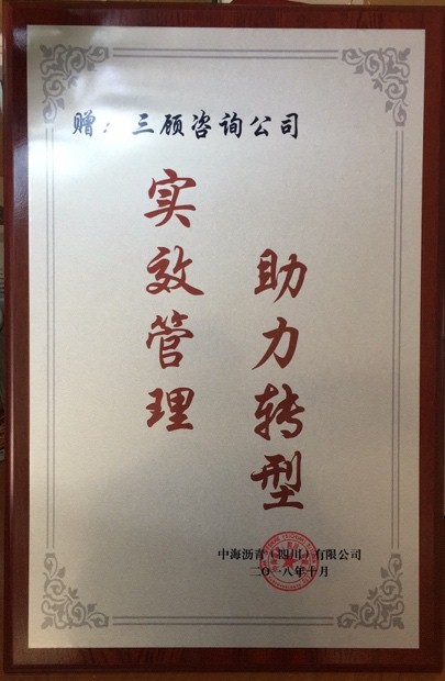 項(xiàng)目完結(jié)初期,中海瀝青向三顧咨詢團(tuán)隊(duì)題詞,茲表彰三顧咨詢?cè)趪?guó)有企業(yè)重組過程中做出的努力。